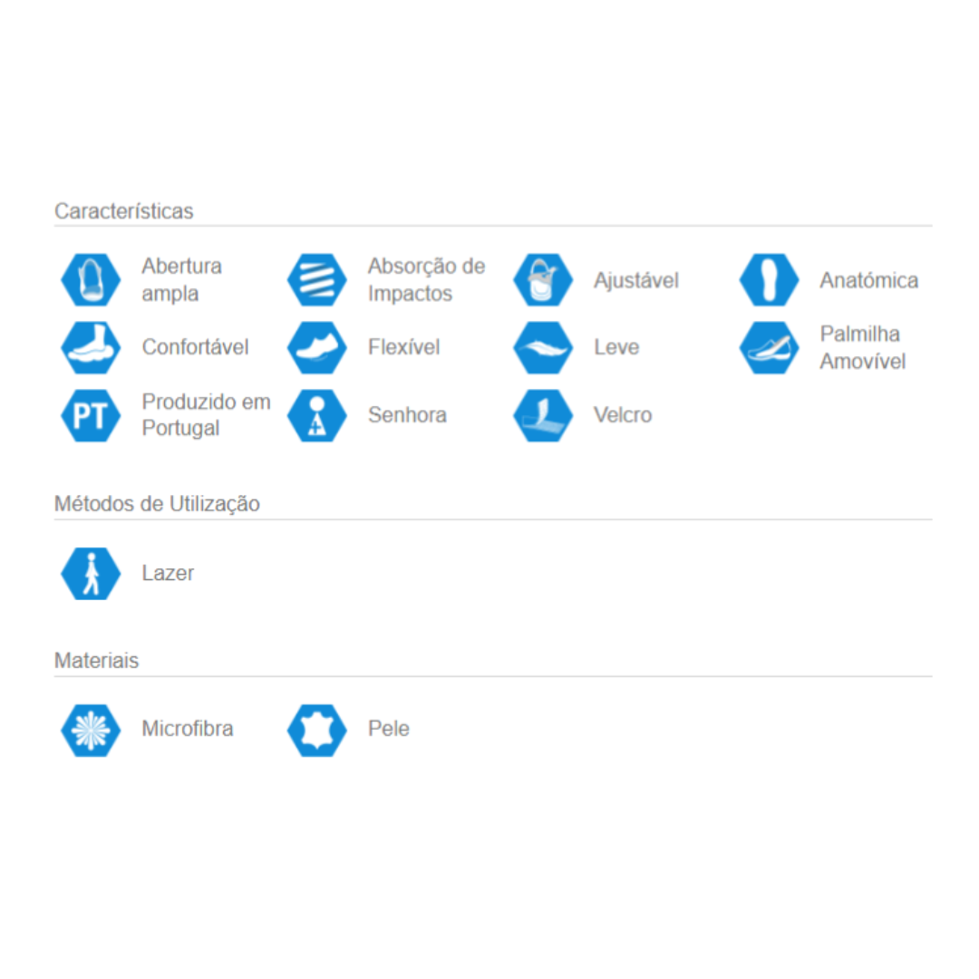 A sua palmilha é anatómica, amovível e macia, para absorver os impactos da marcha e dar o suporte adequado aos seus pés.
